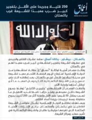 “Today Friday, an Islamic State terrorists succeeded in assaulting a Shiite mosque in Peshawar,” in northwestern Pakistan, the transnational terrorist group said on its Amaq propaganda site.