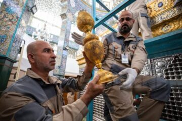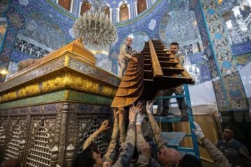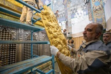 The new Zarih for Hazrat Zaynab (SA) holy shrine that was sent to Damascus from Najaf on Wednesday was installed on Friday (30 Sep 2022) in the presence of specialized staff of the holy shrine of Hazrat Abbas (AS). This Zarih has been built by Iraqi artists under the supervision of holy shrine of Hazrat Abbas (AS). It was sent to Damascus in Syria from Najaf by Al-Abbas (AS) Combat Division.