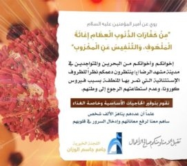 The Charitable Committee of Jassim Al-Wazzan Mosque issued a call saying: “Your brothers and sisters from Bahrain stranded in Mashhad are waiting for your support due to the exceptional circumstances the region is passing through due to the Coronavirus, and their inability to return to their homeland.” The Committee explained in their statement that they will “provide basic needs, especially food, noting that the number of stranded citizens is about 1,000,” urging people to help them “alleviate their suffering and bring joy to their hearts.”