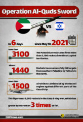 Israeli warplanes have also carried out more than 1,500 airstrikes on various parts of Gaza Strip.It is worth noting that during the 8-day war in Gaza in 2012, about 1,000 rockets were fired by the Palestinian resistance groups in eight days; During the recent operation, 6 days after the battle, more than 3,100 rockets were fired at the occupied territories. This indicates a significant increase in the rocket power of Palestinian resistance groups.