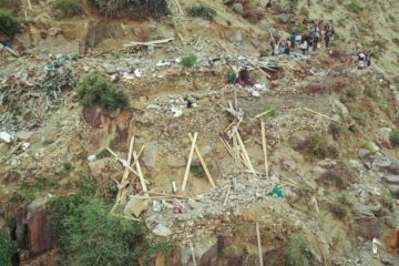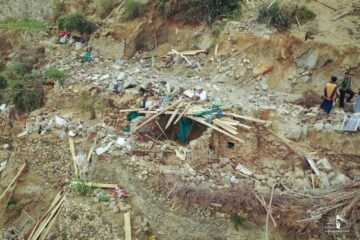 Aerial Images show the destruction caused by the US bomb type (MK82), a laser-guided bomb weighing 500 pounds (227 kilograms) that targeted a home in Wash’ha area of Hajjah province on 07-07-2020.