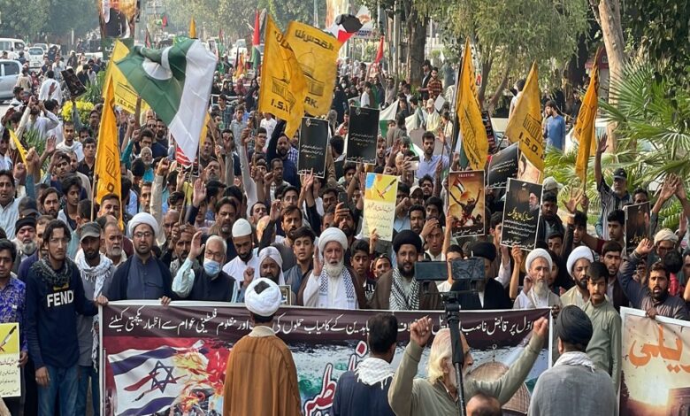 لاہور :امریکی قونصلیٹ کے سامنے احتجاج، فضامردہ باد اسرائیل کے نعروں سے گونج اٹھی