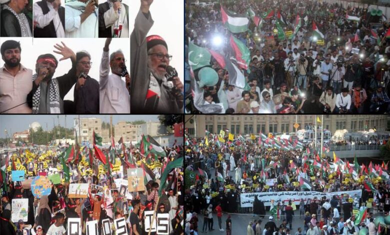 کراچی : مجلس وحدت مسلمین کاامریکی قونصلیٹ کے سامنے اسرائیل مخالف احتجاجی مظاہرہ