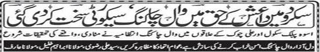 اسکردو جیسے پرامن شہر میں ” یو ایس ایڈ ” کے پیسوں سے چلنے والی عالمی دہشدگرد تنظیم ” داعش ” کی وال چاکنگ سکردو انتظامیہ خصوصا کمشنر اور ڈپٹی کمشنر کے منہ پر زوردار طمانچہ ہے کیونکہ ہال ہی میں ڈپٹی کمشنر سکردو نے کہا تھا کہ بلتستان میں کوئی دشدگرد تنظیم نہیں ہیں –