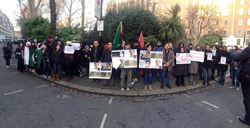 شیعت نیوز: برطانیہ کے دارلحکومت لندن میں پاکستانی ہائی کمیشن کے سامنے سول سوسائٹی کے اراکین نے پاکستان میں ہونے والی شیعہ ٹارگٹ کلنگ کے خلاف ایک احتجاجی مظاہرہ کیا گیا ،جس میں شیعہ سنی سمیت دیگر اقلیوں کے نمائندگان نے شرکت کی اور پاکستان میں مکتب اہلیبت کو تحفظ فراہم کرنے کا مطالبہ کیا۔مظاہرین نے پشاور میں امامیہ مسجد میں ہونے والے بم دھماکے کی بھی شدید مذمت کی اور کہا کہ مذہبی مقامات میں معصوم افراد کی شہادتوں پر سول سوسائٹی کا دکھ ہے، مقررین نے حکومت پاکستان پر بھی زوردیا کہ وہ دہشتگردوں اور مجرموں کو انصاف کے کٹہرےمیں لائے اور ملک میں مختلف مذہبی فرقوں کے ساتھ ساتھ اقلیتوںکے تحفظ کو بھی یقینی بنایا جائے۔