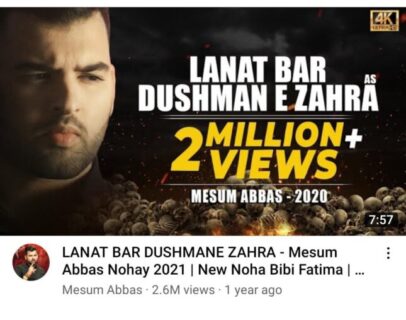 شیعیت نیوز: سعودی نواز کالعدم وہابی دہشت گردتنظیموں کی خوشنودی کیلئے حکومت پاکستان نےیوٹیوب پر نشرنوحوں پر بھی پابندی عائد کروانے کا آغاز کردیا ہے ۔ بین الاقوامی شہرت یافتہ نوحہ خواں میثم عباس کے شہرہ آفاق نوحے لعنت بر دشمن زہراؑ کو یوٹیوب انتظامیہ نے پاکستانی حکام کے مطالبے پر بینڈکردیا ہے ۔