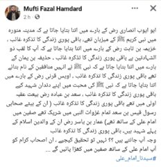 مفتی فضل ہمدرد نے کہا کہ اس کی وجہ آپ جانتے ہیں ؟؟؟ نہیں تو تحقیق کیجئے، ان اصحاب کرام کو آپ امام علی ؑ کے ساتھ صفین میں کھڑا پائیں گے۔