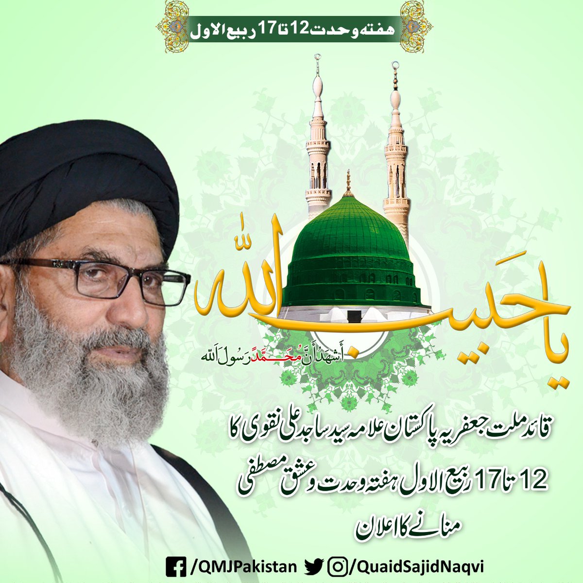 اسوۂ رسول رہتی دنیا تک انسانوں کیلئے ہدایت و رہنمائی کا سر چشمہ ہے جشن میلاد النبی 12 تا 17 ربیع الاول ہفتہ وحدت کے طور پر منایا جائے گا