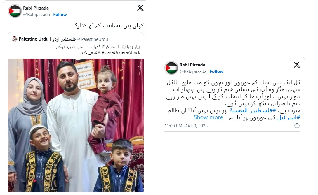 مسلمان کا خون پانی ہے کیا؟ اسرائیل کے حملے کے دوران شہید ہونے والے فلسطینی خاندان کی تصویر بھی ایکس پر پوسٹ کی۔