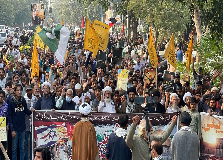 مجلس وحدت مسلمین پاکستان اور امامیہ سٹوڈنٹس آرگنائزیشن پاکستان لاہور ڈویژن کے زیراہتمام یکجہتی فلسطین ریلی چیئرنگ کراس مال روڈ سے نکالی گئی۔