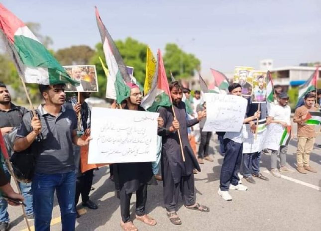 مظاہرین سے خطاب کرتے ہوئے حیدر ثقفی کا کہنا تھا کہ فلسطین کے مظلوم مسلمان مسلسل اسرائیلی عتاب کا شکار ہیں۔