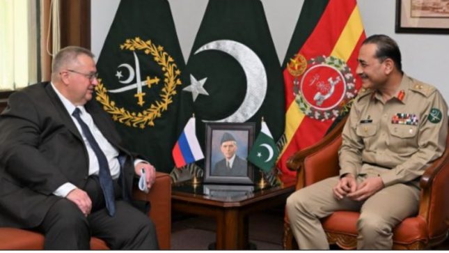 آرمی چیف جنرل عاصم منیر سے نائب روسی وزیراعظم نے ملاقات کی جس کے دوران خطے کی صورتحال اور دیگر باہمی دلچسپی کے امور پر تبادلہ خیال کیا گیا۔