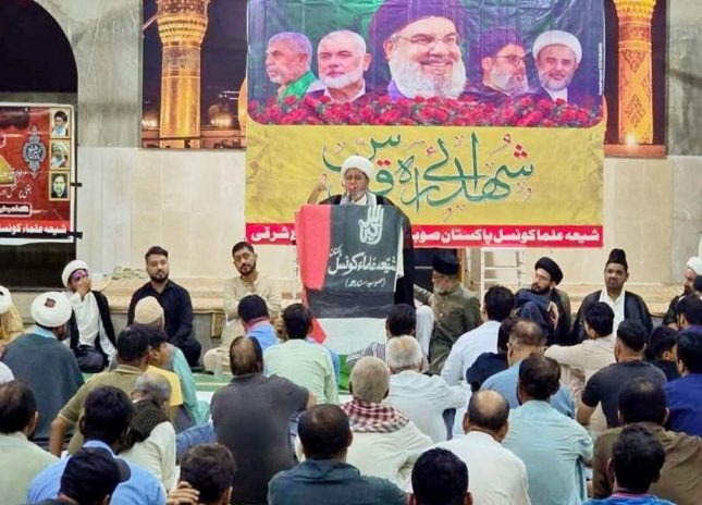 حمایت مظلومین کا نفرنس سے خطاب کر تے ہوئے شیعہ علماء کونسل پاکستان کے سیکرٹری جنرل علامہ شبیر حسن میثمی نے مختلف امور موجودہ عالمی صورتحال پر تفصیلی خطاب کرتے ہوئے کہا کہ آزادی بیت المقدس فلسطینی عوام کا مقدر ہے۔