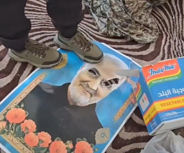 شہید قاسم سلیمانی اور رہبر معظم کی تصاویر کو پھاڑ کر پاؤں تلے روندنے کی تصاویر وائرل ہوئیں۔