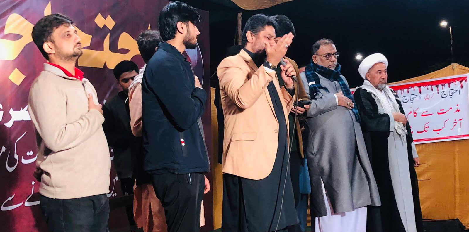 مجاہد ملت علامہ حسن ظفر نقوی کی قیادت میں دھرنے کے دوران مجلس عزا، شخصیات کی بھرپور شرکت