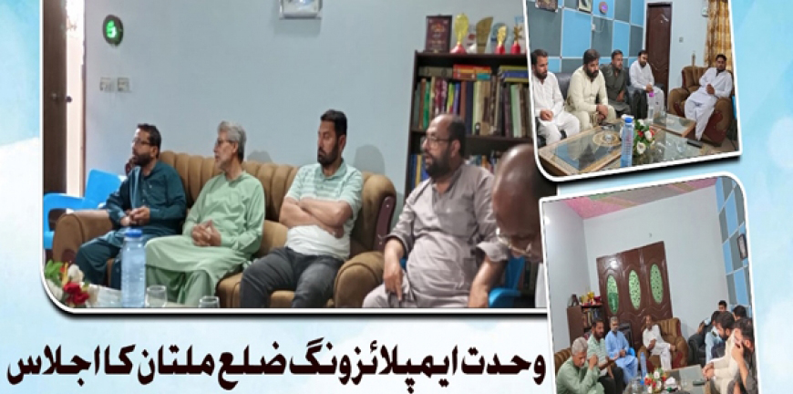 شیعیت نیوز : وحدت ایمپلائز ونگ ضلع ملتان کا اجلاس صوبائی آرگنائزر جنوبی پنجاب برادر سید رضوان حیدر کاظمی کی زیر صدارت ملتان میں منعقد ہوا۔ اس موقع پر مرکزی صدر وحدت ایمپلائز ونگ پاکستان برادر سلیم عباس صدیقی بھی موجود تھے۔