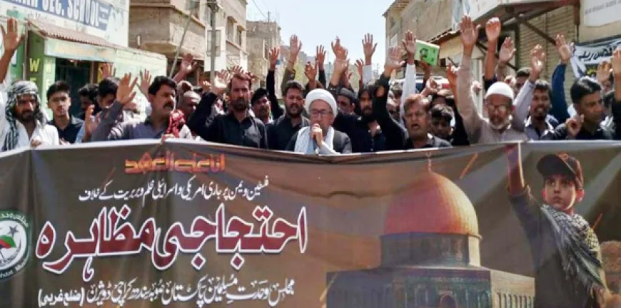 کراچی میں ٹرمپ منصوبے کے خلاف ایم ڈبلیو ایم کا بڑا احتجاج