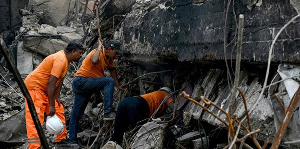 ریسکیو 1122 اور اربن سرچ اینڈ ریسکیو ٹیمیں تاحال متاثرہ عمارت کے ملبے میں موجود انسانی باقیات کی تلاش میں مصروف ہیں۔