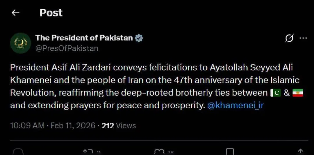 یہ مبارکباد 47ویں سالگرہ کے موقع پر جاری کی گئی ہے، جب ایران کے عوام انقلاب کی کامیابی اور مزاحمت کی تاریخ کو یاد کر رہے ہیں۔